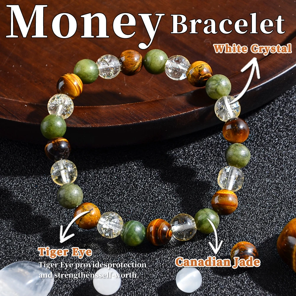 1PC Vintage Money Bracelet, Attract Wealth Bracelet - Canadian Jade, Bring Wealth, Income, Prosperity and Prosperity